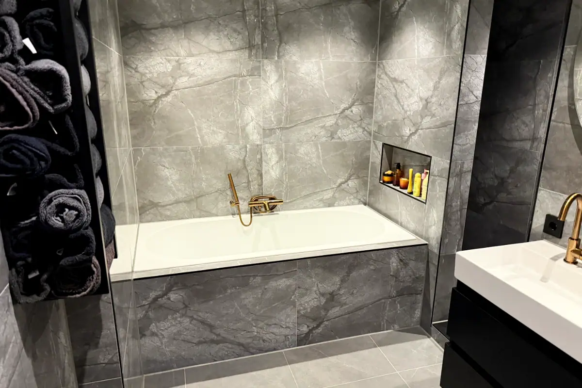 Badkamer laten kitten? Strak kitwerk rondom douche, bad en wastafel zorgt voor een waterdichte en nette afwerking.